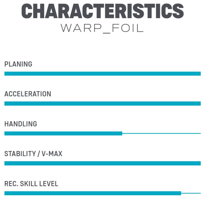 In unseren Augen stellt das WARP_FOIL einen neuen Maßstab in Punkto Kontrolle : Leistung : Wind-Range dar. Es ist zu 100% darauf ausgelegt, low-drag Foil-Rennen zu gewinnen!
