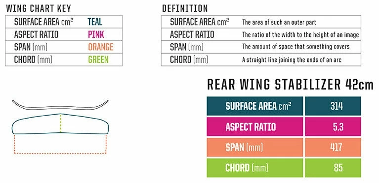 | SIZE | SURFACE AREA | SPAN | HEIGHT | ASPECT RATIO |