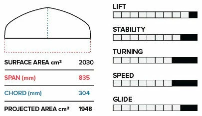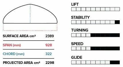| SIZE | SURFACE AREA | SPAN | HEIGHT | PROJIZIERTE FLÄCHE |