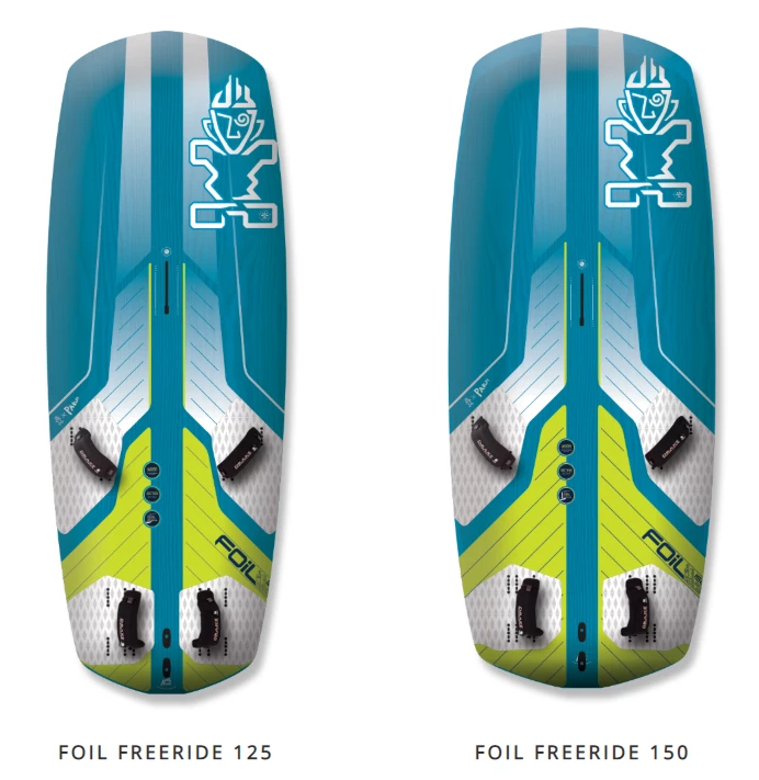 Shorter noses and a mast track placed further back improve maneuverability and promote easy take off. It also reduces swing weight for a lighter, floating sensation in flight. Improved volume distribution, thin profiles and flat decks enhance stability and control during flight and when tacking and uphauling. The Foil Freeride 125 and 150 are available in Starlite and Wood Sandwich.