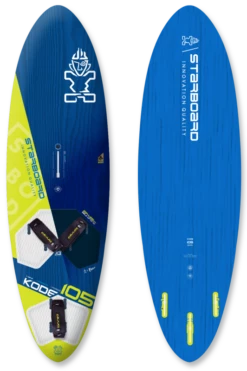 | Kode 105 | Wood Sandwich / Carbon Reflex Sandwich | 105l | 229cm | 66cm | 42.2cm | 13.1cm | 2 | MFC Drake FreeWave 30 + Drake Natural Wave 11 + MFC TF 21 | 2x StarBox 10 + US Box 8″ | 5.0 – 7.0m2 | 7.8kg | 6.82kg |