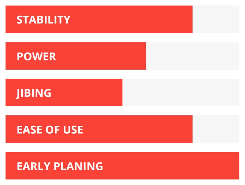 - Long Tail Design: With added area behind the fin box, the Rios not only plane earlier, they also won’t tilt up as they transition on to the plane: there’s no longer the need to learn the tricky technique of overcoming this hump. This is unique to the Rio Long Tail and allows the rider to get planing incredibly smoothly, like magic. It’s an amazing experience to get planing without first having to learn how. The board simply accelerates and accelerates and the rider finds himself naturally planing in the right position.
