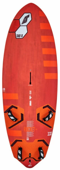 The Rocket+ masters the balancing act between peak performance and user-friendliness to perfection and makes breath-taking speed easy to handle. A low entry rocker provides early planing power and control, even when the blasting at full speed in overpowered and choppy conditions. The front V double concave leads to impressive power that converts into acceleration and top speed together with the cut-outs in the tail section. Still the Rocket+ carves comfortably in a controlled manner during jibes due to its thin rails, which allows you to keep the speed easily. Multiple foot strap positions round out the versatility and performance potential for all riders with an outside position for experts and a more centered position for intermediates.